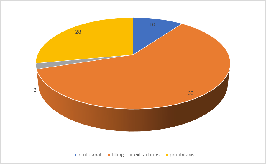 Un indice seria 10/60*100 Esto es el calculo de la cantidad de root canal dividido entre la cantidad de filling multiplicado por 100. Seria 16.6 y se interpreta que de cada 100 obturaciones que se hacen, se realizan aproximadamente 17 tratamientos de canal .