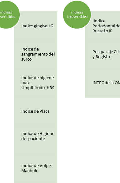 Reversibles: Medida de la condición que puede ser resuelta o reversible. Ejemplo los indices gingivales